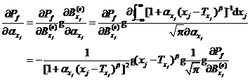 根據(jù)復合函數(shù)求導法則容易得到模糊隨機失效概率對基本變量隸屬函數(shù)分布參數(shù)的可靠性試驗靈敏度如式、所示。