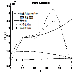 對(duì)于此工程算例,利用900個(gè)失效樣本點(diǎn)擬合概率密度函數(shù)和全局靈敏度。由圖8.7可以看出基于有限混合密度和自適應(yīng)核密度估計(jì)方法得到的失效概率函數(shù)曲線波動(dòng)較大,其他兩種方法雖也有較大誤差,但與參考精確解的曲線的趨勢(shì)較為貼近。由圖8.8可以看出基于最大熵密度估計(jì)法與正交多項(xiàng)式擬合概率密度法所得的全局靈敏度曲線與參考精確解的曲線相差不大,而基于有限混合密度法與自適應(yīng)核密度估計(jì)法得到的全局靈敏度仍然波動(dòng)較大。